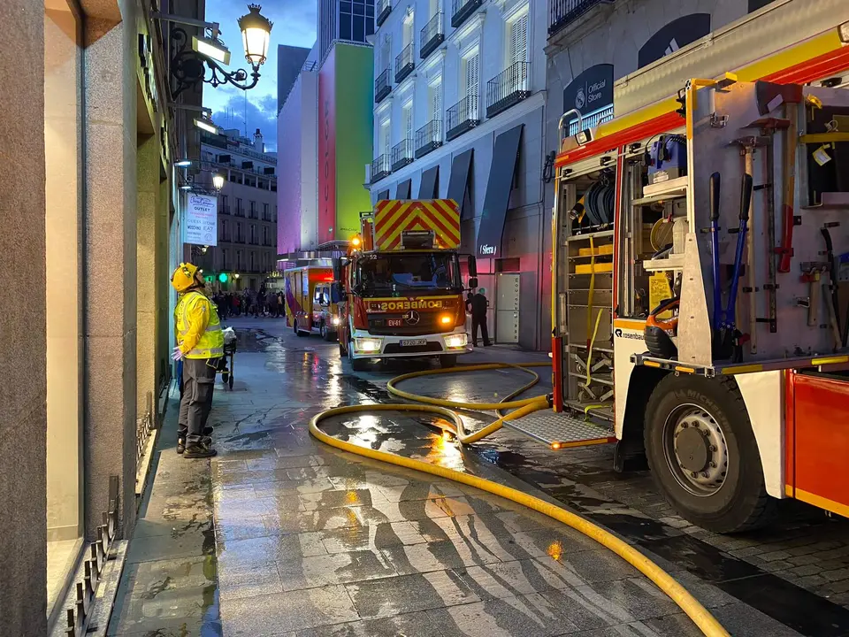 Un incendio declarado este viernes por la tarde en una vivienda situada en el número 19 de la calle Tetuán, en las inmediaciones de la Puerta del Sol, provocó una gran columna de humo y obligó a desalojar todo el edificio, de cinco plantas, ha informado Emergencias Madrid.