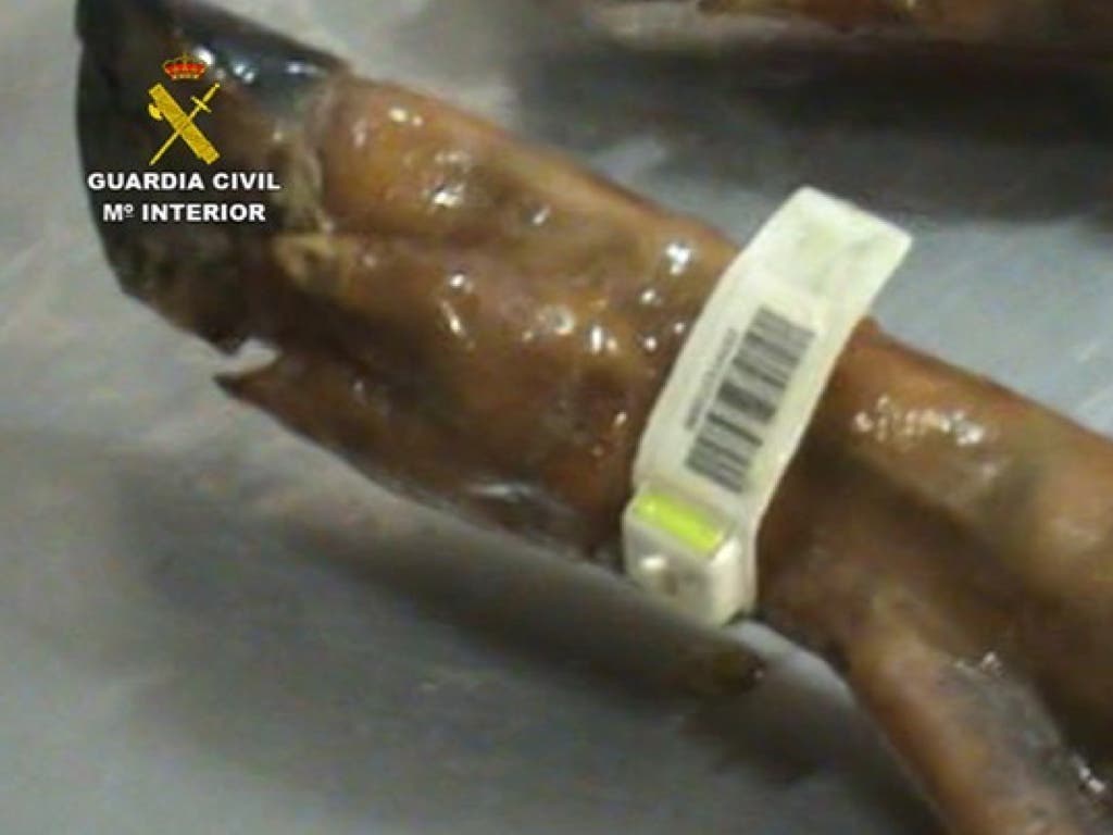 Una vez el Servicio de Protección de la Naturaleza de la Comandancia de la Guardia Civil de Madrid tuvo conocimiento de ello, los agentes inspeccionaron un establecimiento en la localidad de Alcobendas e inmovilizaron 42 paletas de cebo ibérico falsificadas.