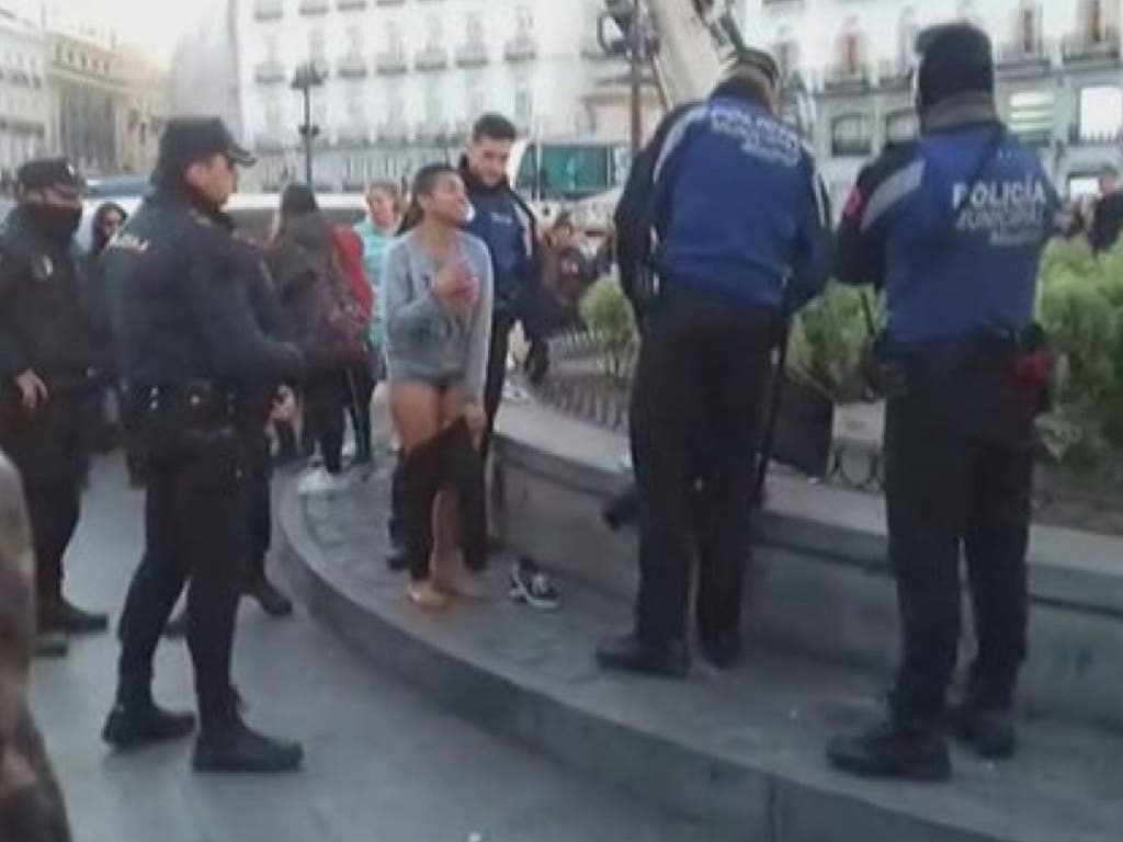 Detenida por bañarse semidesnuda en la fuente de la Puerta del Sol