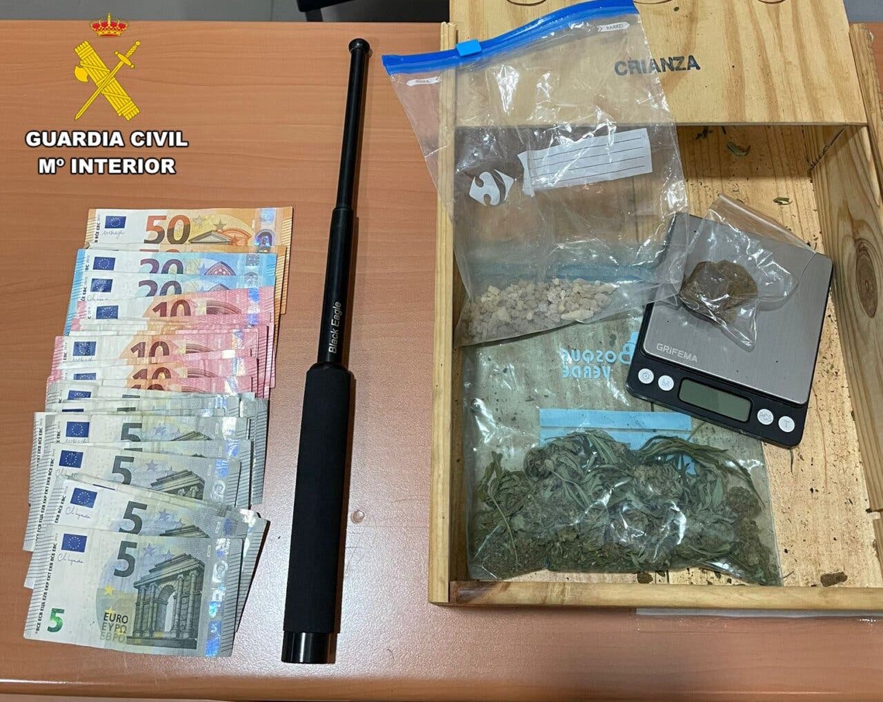 En concreto, los agentes hallaron 23 gramos de MDMA, 14 gramos de hachís y 15 gramos de marihuana. Además, intervinieron cerca de 1.400 euros que se encontraban junto a la droga intervenida.