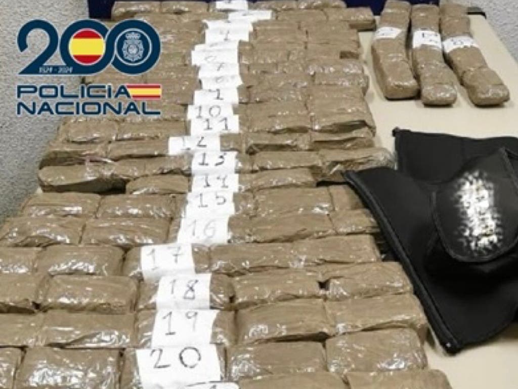 Los agentes registraron su equipaje y hallaron diversos paquetes con una sustancia prensada de color marrón, que podría ser cocaína. Pero además, el hombre llevaba otros 26 paquetes adheridos al torso, ocultos bajo un chaleco, envueltos en plástico transparente y con un peso total de más de 13 kilos.
