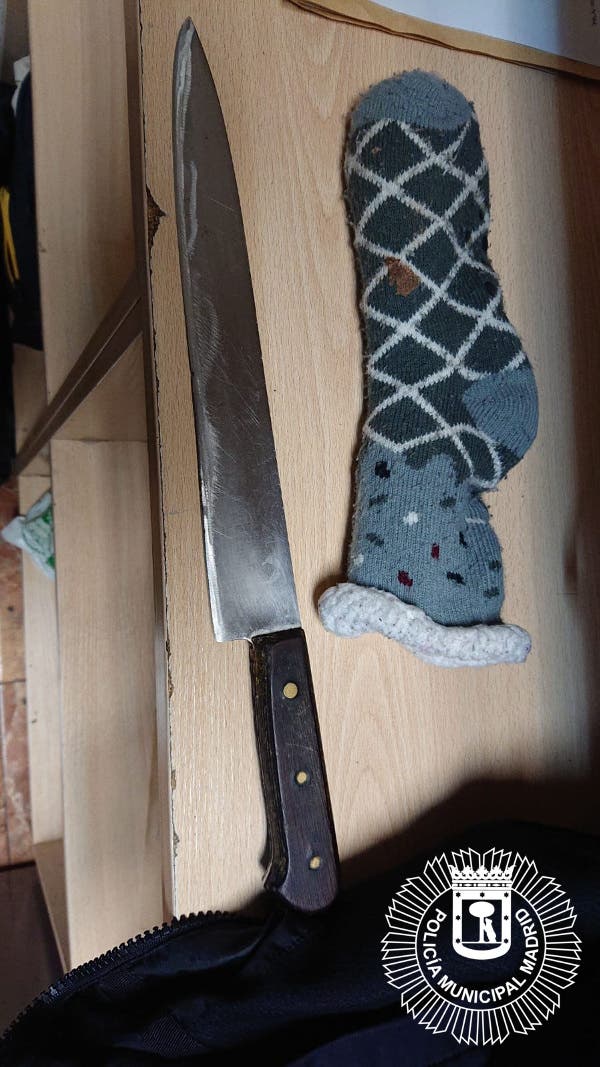La Policía encontró el cuchillo de grandes dimensiones escondido dentro de un calcetín.