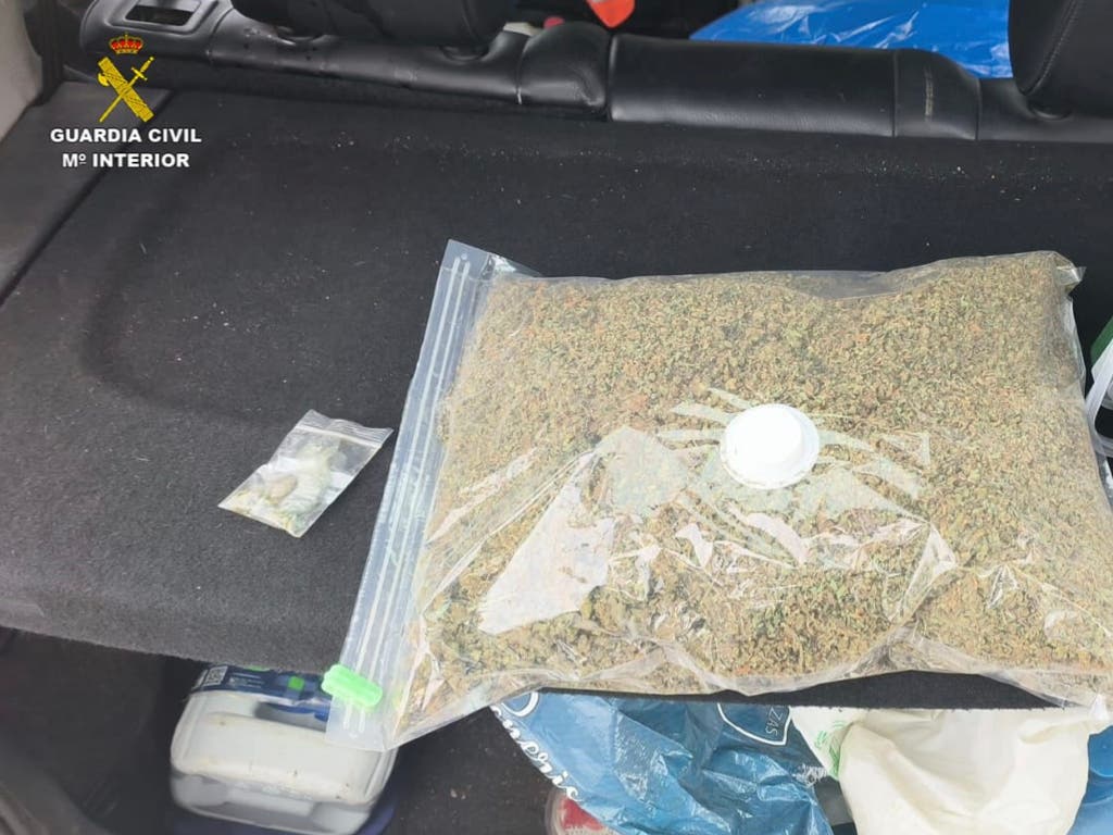 Los agentes identificaron al conductor que transportaba en el maletero de su vehículo una bolsa de autocierre envasada al vacío y un recipiente que contenían marihuana. Ante este hallazgo, esta persona fue conducida, junto con su vehículo, hasta las dependencias de la Guardia Civil en la localidad para el total esclarecimiento de los hechos, lugar en el que se procedió a su detención por un presunto delito contra la salud pública por tráfico de drogas.