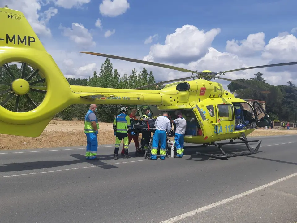 Al lugar acudieron Bomberos de la Comunidad de Madrid, efectivos de la Guardia Civil, varias ambulancias y un helicóptero del SUMMA que lo trasladó a La Paz.