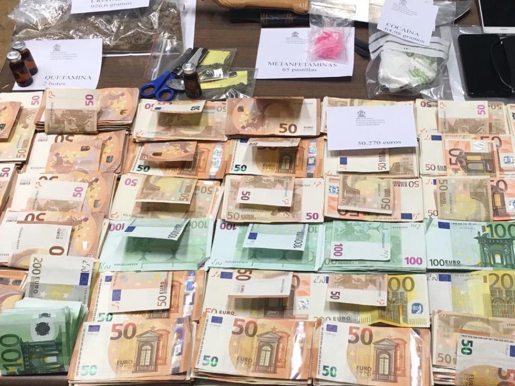 Inmediatamente el propietario fue detenido, facilitando el Juzgado de Instrucción en funciones de guardia el correspondiente mandamiento de entrada y registro de su domicilio. Allí fueron intervenidos más de 50.000 euros en efectivo, diversos elementos informáticos y dos machetes.