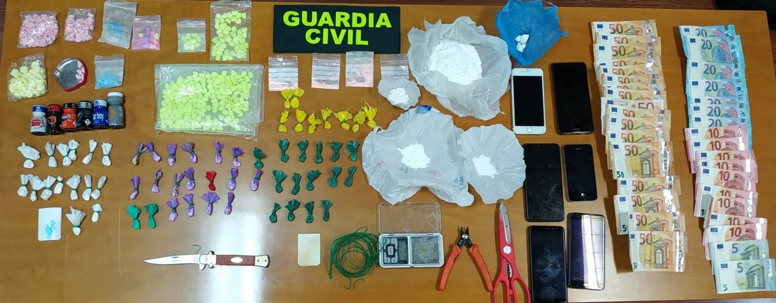 Agentes de la Guardia Civil, del Puesto de Torrelaguna han logrado detener a dos personas dedicadas presuntamente al menudeo de sustancias estupefacientes a pequeña escala, logrando intervenir éxtasis, popper, cristal, cocaína, metanfetamina, ketamina, y moneda fraccionada.
