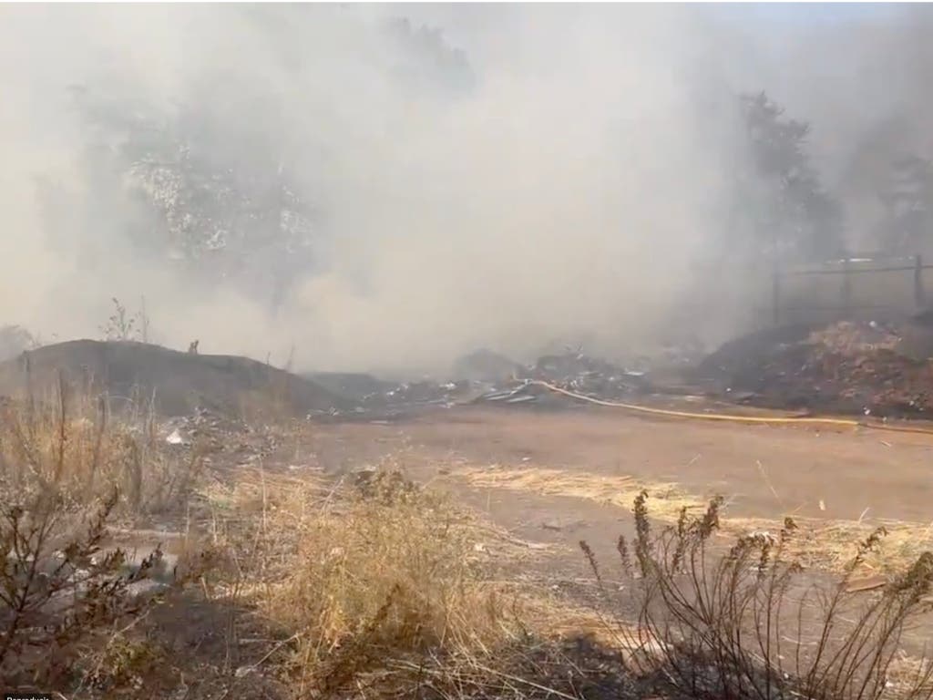 Diez dotaciones de bomberos extinguen un incendio de pasto con mucho humo en la Cañada Real