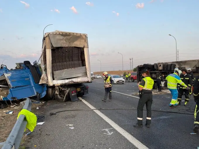 Se trata de una colisión entre dos camiones que ha obligado a cortar la carretera. Hasta el lugar se han desplazado Bomberos de la Comunidad de Madrid, SUMMA y Guardia Civil.