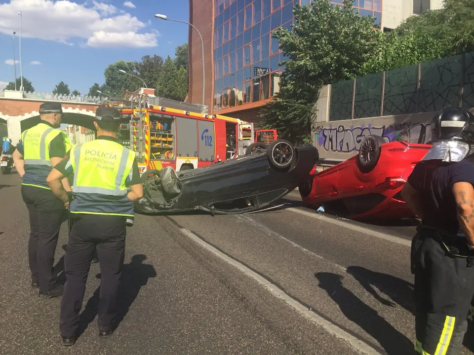 El suceso ha ocurrido en torno a las 18.15 horas de este jueves cuando, por causas que investiga la Policía Municipal de Madrid, los vehículos han volcado tras colisionar a la altura del carril izquierdo de dicha carretera, y ambos se han quedado volcados en la calzada.