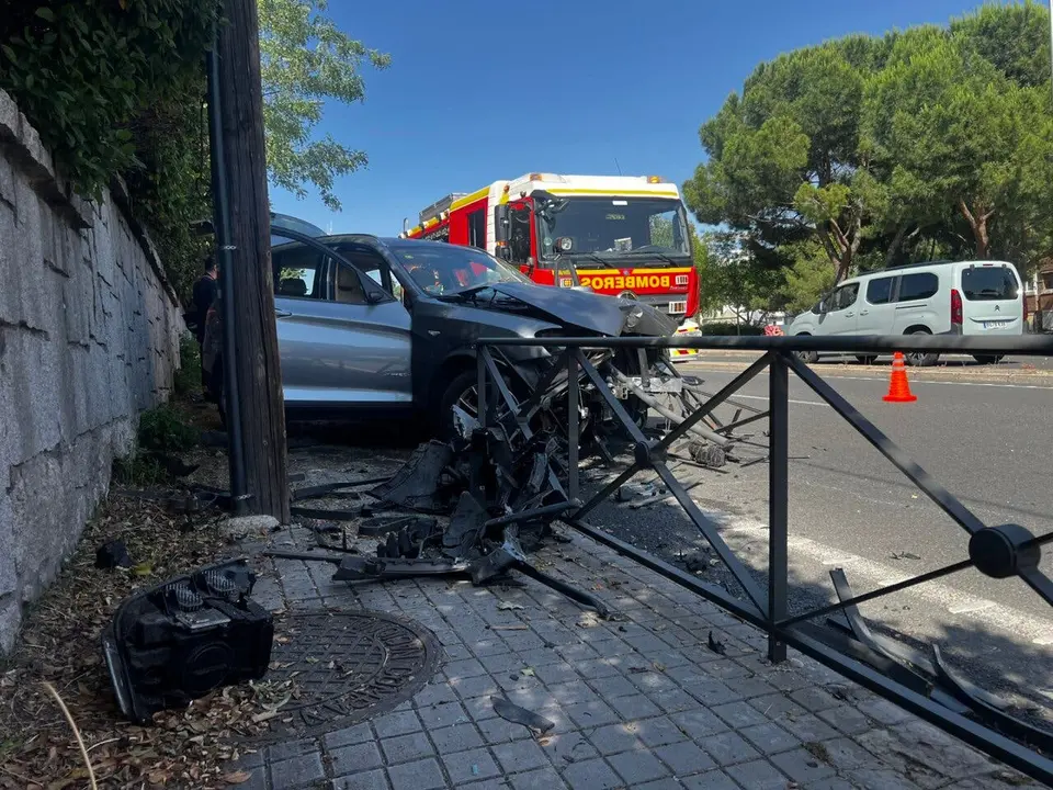 También han intervenido los Bomberos del Ayuntamiento de Madrid, que han saneado la estructura dañada y han retirado los elementos inestables. Además, han colaborado en la extracción del coche siniestrado.