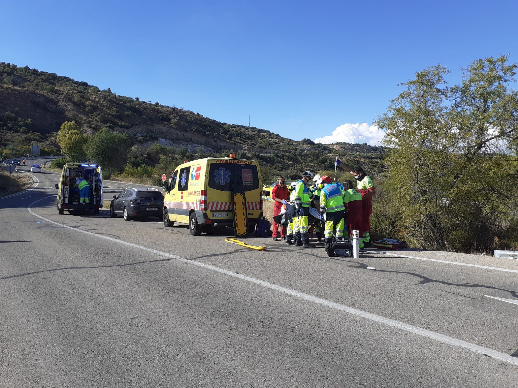 El accidente se ha producido sobre las 16:30 horas, y hasta el lugar se han desplazado los sanitarios del SUMMA, que han encontrado a los dos heridos. El hombre presentaba un traumatismo costal y abdominal y ha sido trasladado en helicóptero al Hospital 12 de Octubre.