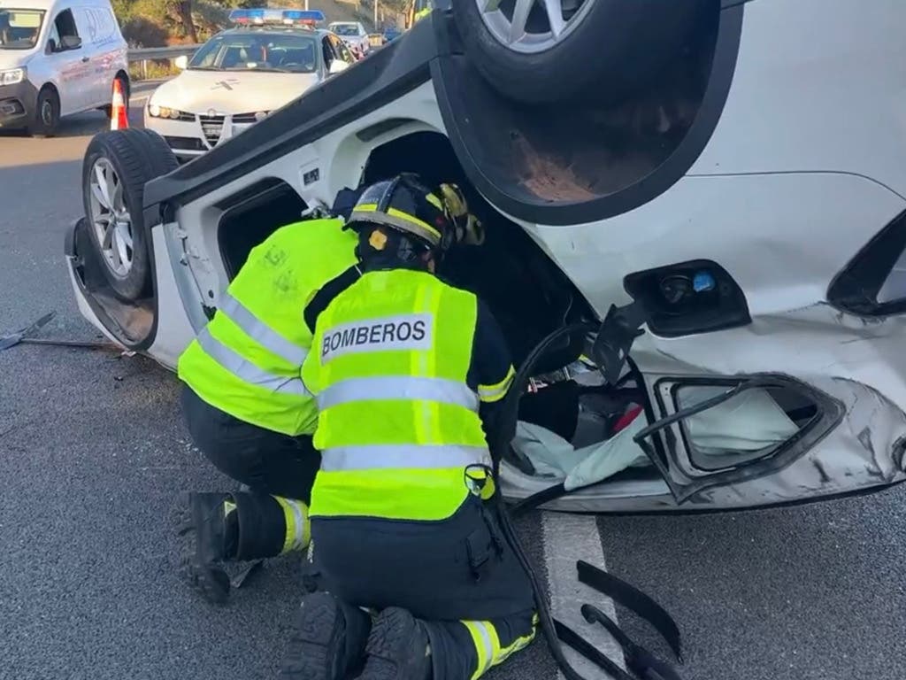 Los dos ocupantes del coche volcado han quedado atrapados en su interior. Se trata de un hombre y una mujer de unos 55 años, que han sido liberados por los Bomberos del Ayuntamiento de Madrid.