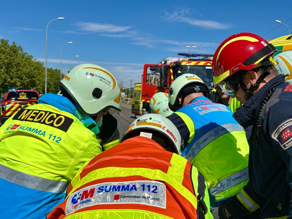 El conductor, un hombre de 35 años, ha tenido que ser rescatado por los Bomberos de la Comunidad de Madrid. Presentaba una fractura de fémur y ha sido estabilizado y trasladado por el SUMMA al Hospital 12 de Octubre como potencialmente grave.
