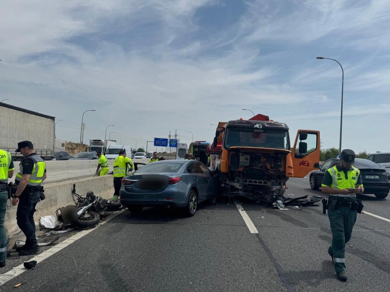 El conductor del turismo, de 57 años, ha resultado herido leve y ha sido evacuado al Hospital Ramón y Cajal, y el del camión ha resultado ileso. La Guardia Civil investiga las causas del siniestro.