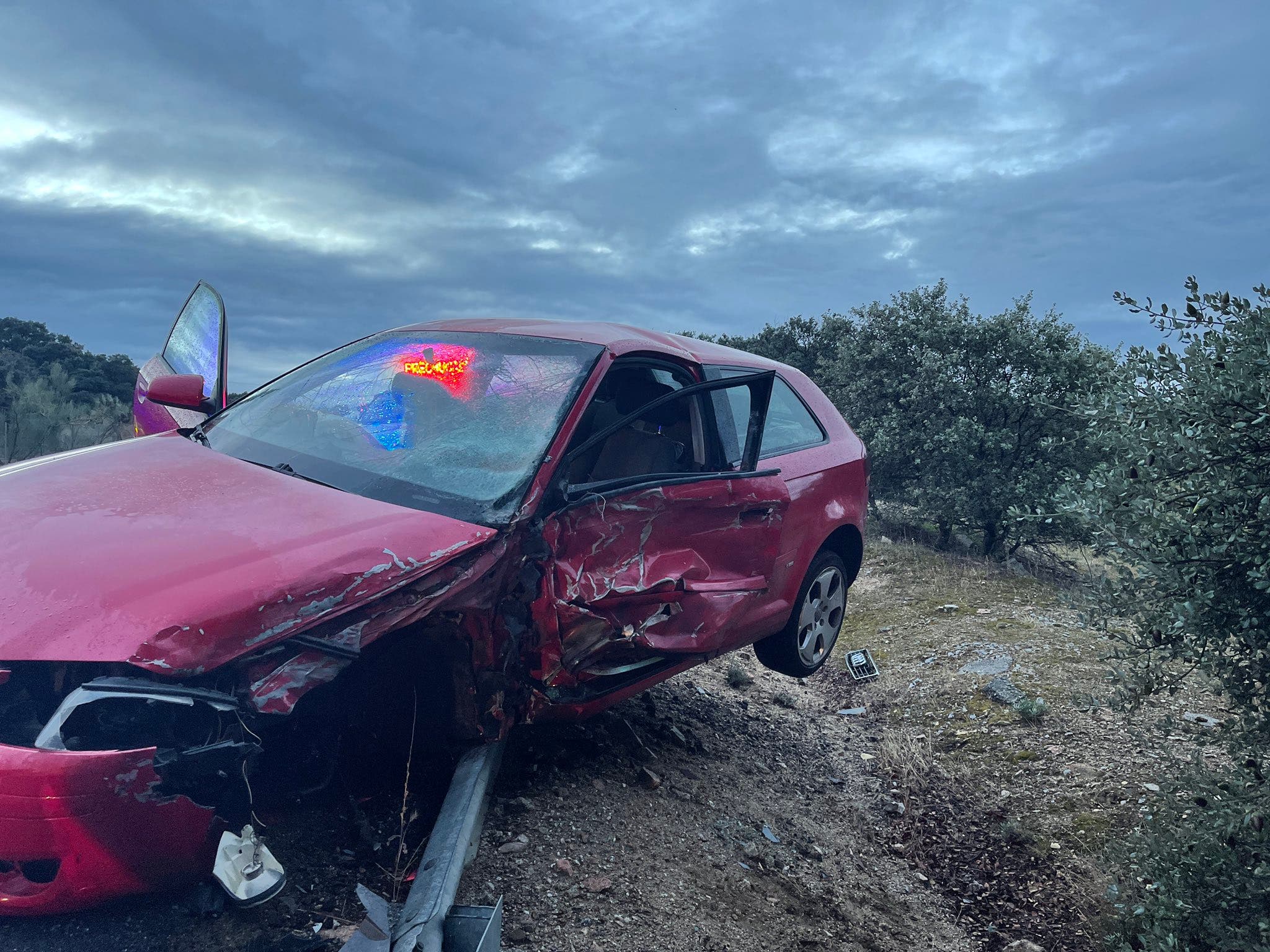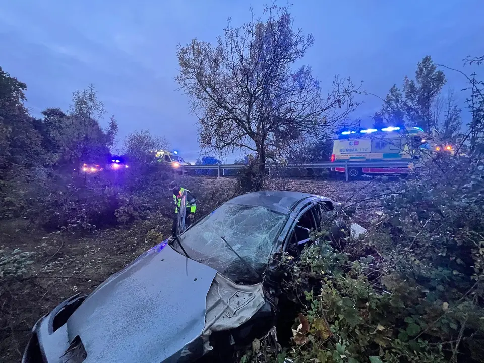 El accidente se ha producido sobre las 7 de la mañana cuando, por causas que investiga la Guardia Civil, el conductor de uno de los coches ha perdido el control y el vehículo ha quedado en la zona lateral, a 6 metros de la vía.