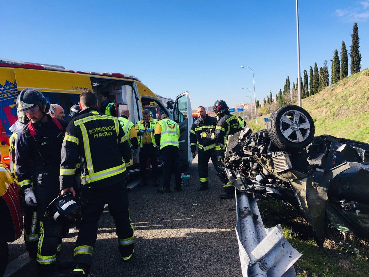 Dos jóvenes de entre 20 y 25 años, que no portaban documentación alguna y viajaban en un coche robado, han resultado heridos muy graves en un accidente de tráfico ocurrido este viernes en la M-23, según ha informado Emergencias Madrid.