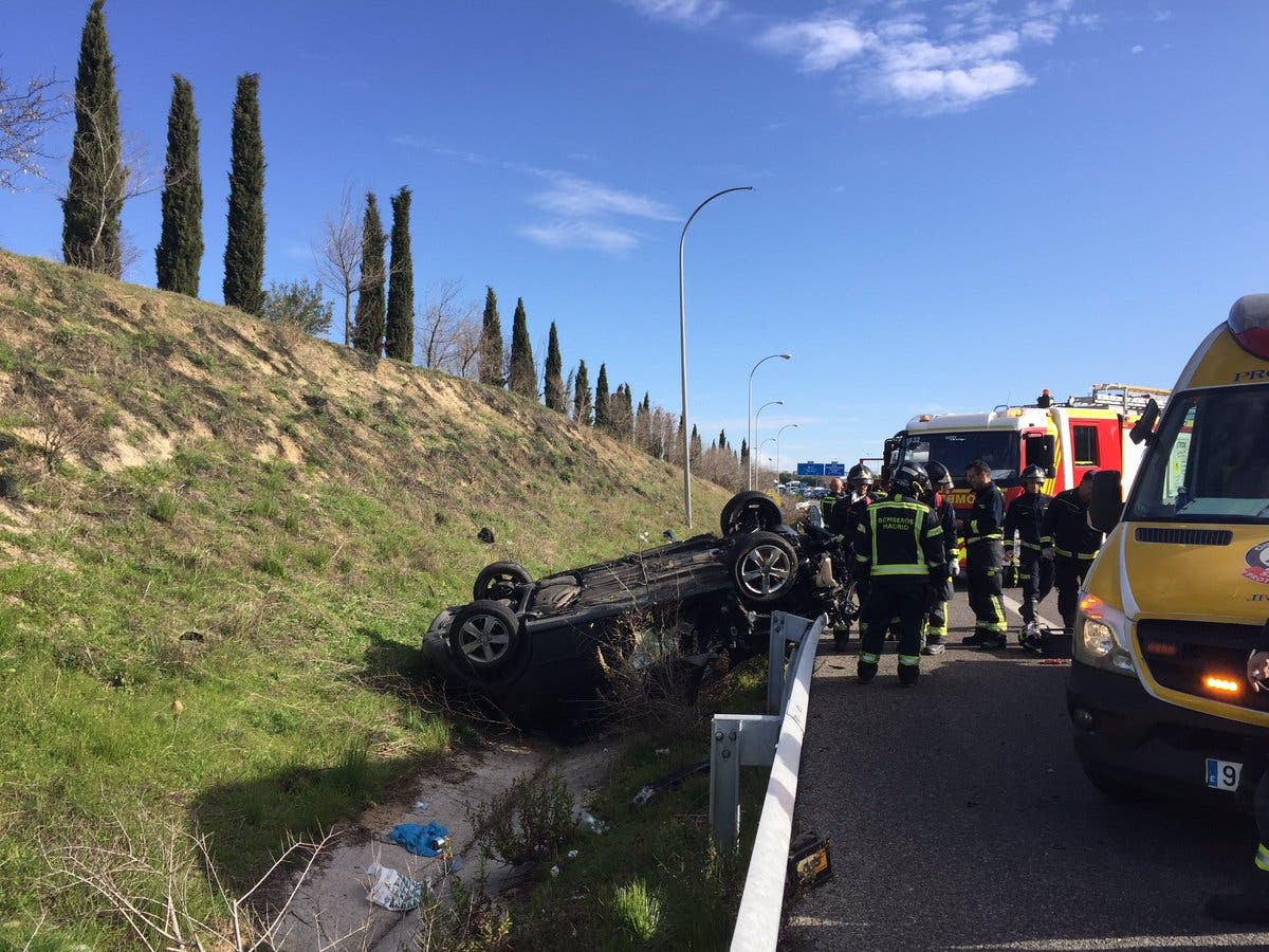 El accidente ha tenido lugar sobre las 12.30 horas a la altura del kilómetro 1,400 de la citada vía, en sentido entrada a la capital, cuando el coche en el que viajaban los dos heridos ha colisionado contra otro turismo y ha dado varias vueltas de campana hasta salir despedidos sus dos ocupantes.
