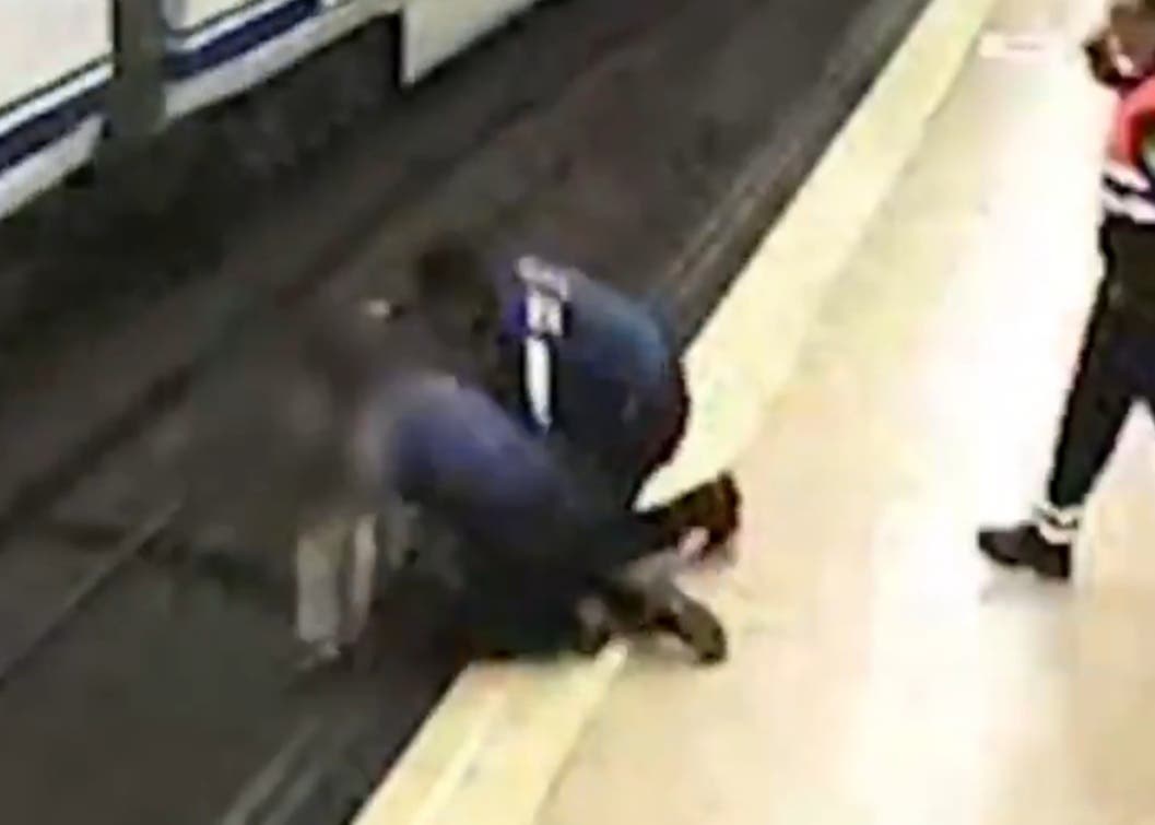 En las imágenes, captadas por las cámaras del Metro, se ve a la joven bajando a las vías y, pocos segundos después, es sacada a la fuerza por los policías que llegaron corriendo al lugar.