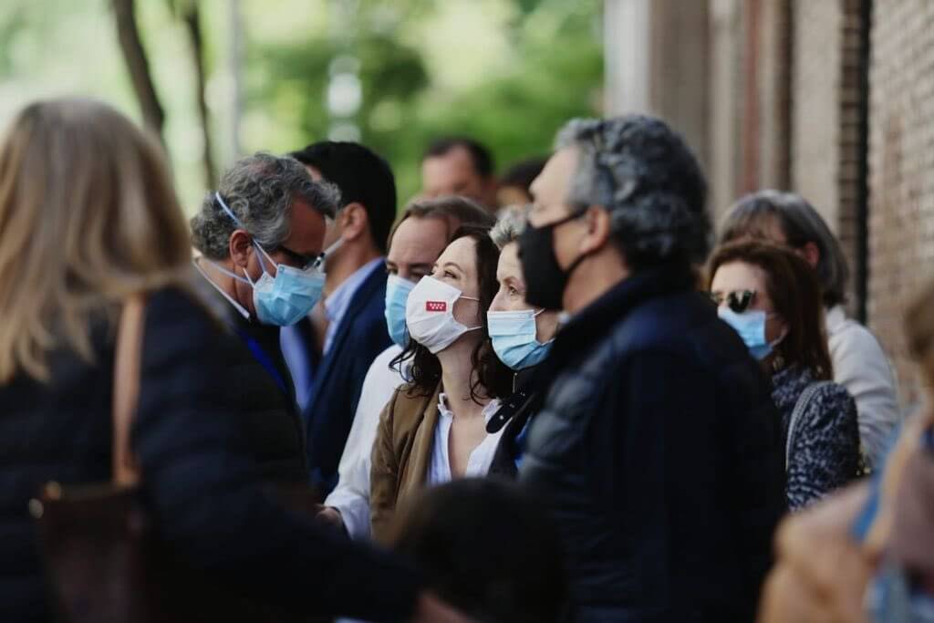 La presidenta regional y candidata del PP a la reelección, Isabel Díaz Ayuso, ha destacado que esta es una jornada histórica: «Hoy elegimos el modelo de comunidad y el modelo de país que queremos a partir de mañana y solo deseo que sea en convivencia», ha señalado a los periodistas tras haber sido recibida entre aplausos por vecinos y hosteleros del barrio.
