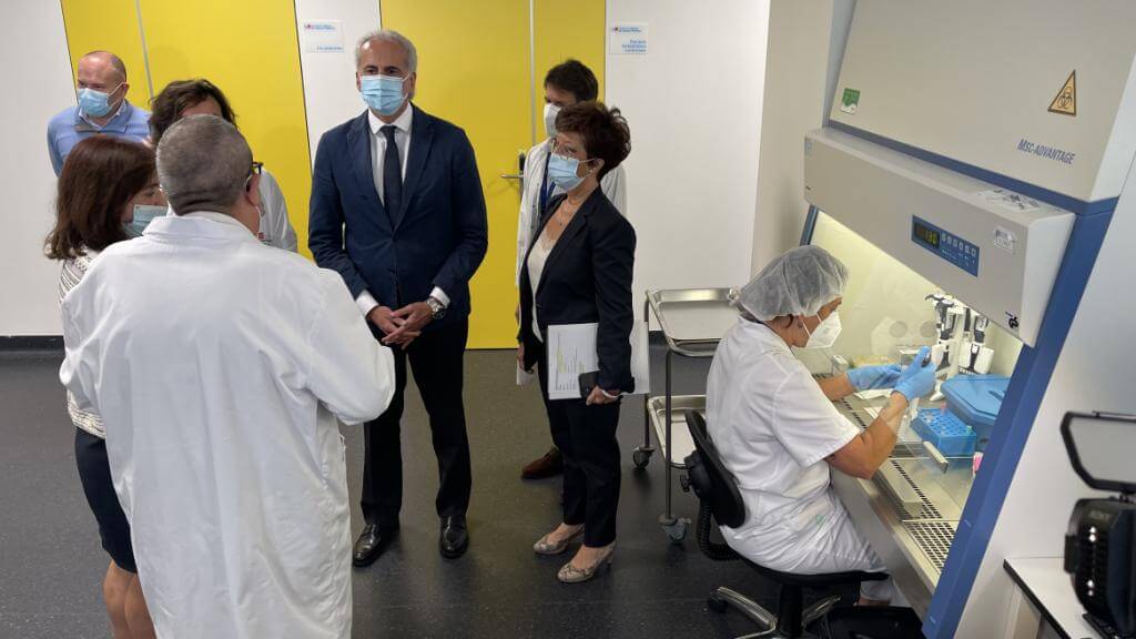Ruiz Escudero ha visitado el Laboratorio Regional de Salud Pública, ubicado en el Hospital Enfermera Isabel Zendal, donde se han procesado las muestras clínicas, acompañado por la directora general de Salud Pública, Elena Andradas y el gerente del centro hospitalario, Javier Marco.
