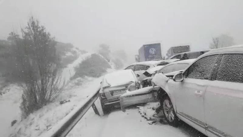 Las imágenes son espectaculares. Medio centenar de vehículos se vieron implicados este viernes en un accidente múltiple en la A-1, a su paso por el puerto madrileño de Somosierra, en dirección Irún, en medio de la fuerte nevada, informaron el 112 de la Comunidad de Madrid y de Castilla y León.