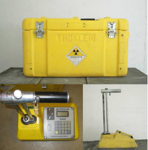 El equipo es de medida de densidad y humedad en suelos de la firma Troxler, Modelo 3411B N1 de serie 18190, de dos fuentes radiactivas, una de cesio-137 de 0,3 GBq y otra de americio-241/berilio de 1,48 GBq de actividad nominal máxima.