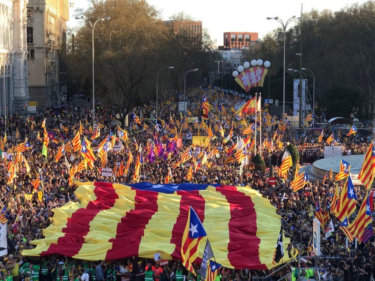 La manifestación, de Atocha a Cibeles, convocada por más de 70 colectivos, ha sido encabezada por el presidente de la Generalitat, Quim Torra, y buena parte de su Gobierno.