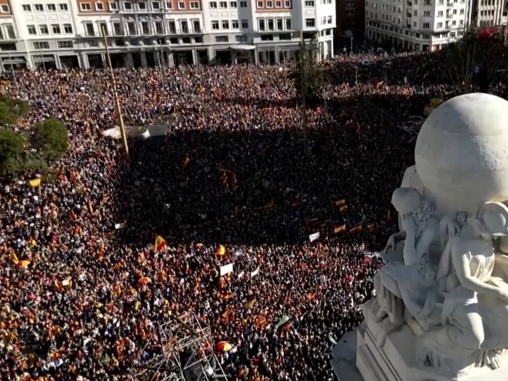 Decenas de miles de personas han protestado este domingo contra la amnistía y las cesiones del Gobierno de Pedro Sánchez a los independentistas en la cuarta protesta convocada por el PP en Madrid por el acuerdo de investidura de PSOE y Junts, el partido de Puigdemont.