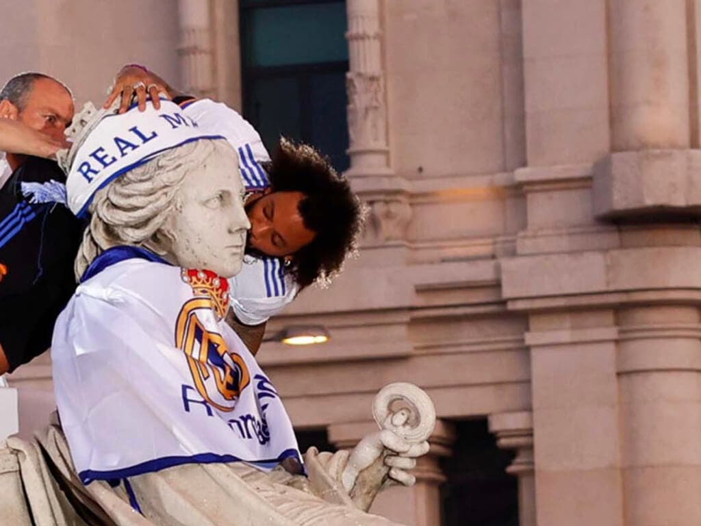 El momento cumbre llegó cuando el capitán Marcelo le puso una bufanda y una bandera del Real Madrid a la estatua de la diosa.