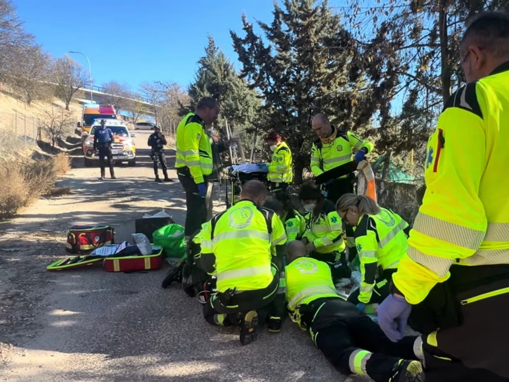 Los sanitarios del SAMUR han encontrado al hombre en coma, y lo han intubado y trasladado grave a La Paz. Otro ciclista y un hombre que paseaba por la zona han sido los primeros en atenderlo.