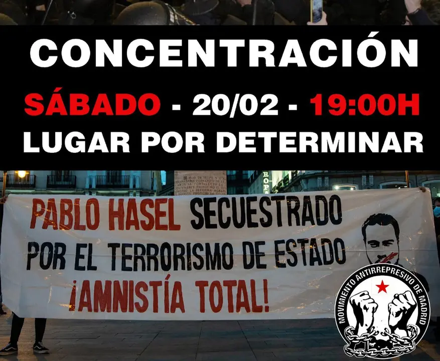 No concretan el lugar exacto en el que será la manifestación de este sábado, convocada a las 19 horas en Madrid, y piden desde el mismo perfil de Twitter (en el que publican el cartel que se muestra como imagen de portada) a sus seguidores que estén atentos este viernes a la convocatoria. «Ante la brutalidad policial y para exigir la absolución de todos los detenidos, este sábado volvemos a salir a las calles», anuncian. Además, han convocado más concentraciones para este fin de semana en otros puntos del país.