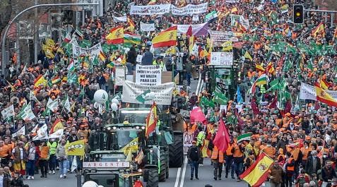 Entre 100.000 y 400.000 agricultores y ganaderos se manifiestan en Madrid contra el Gobierno