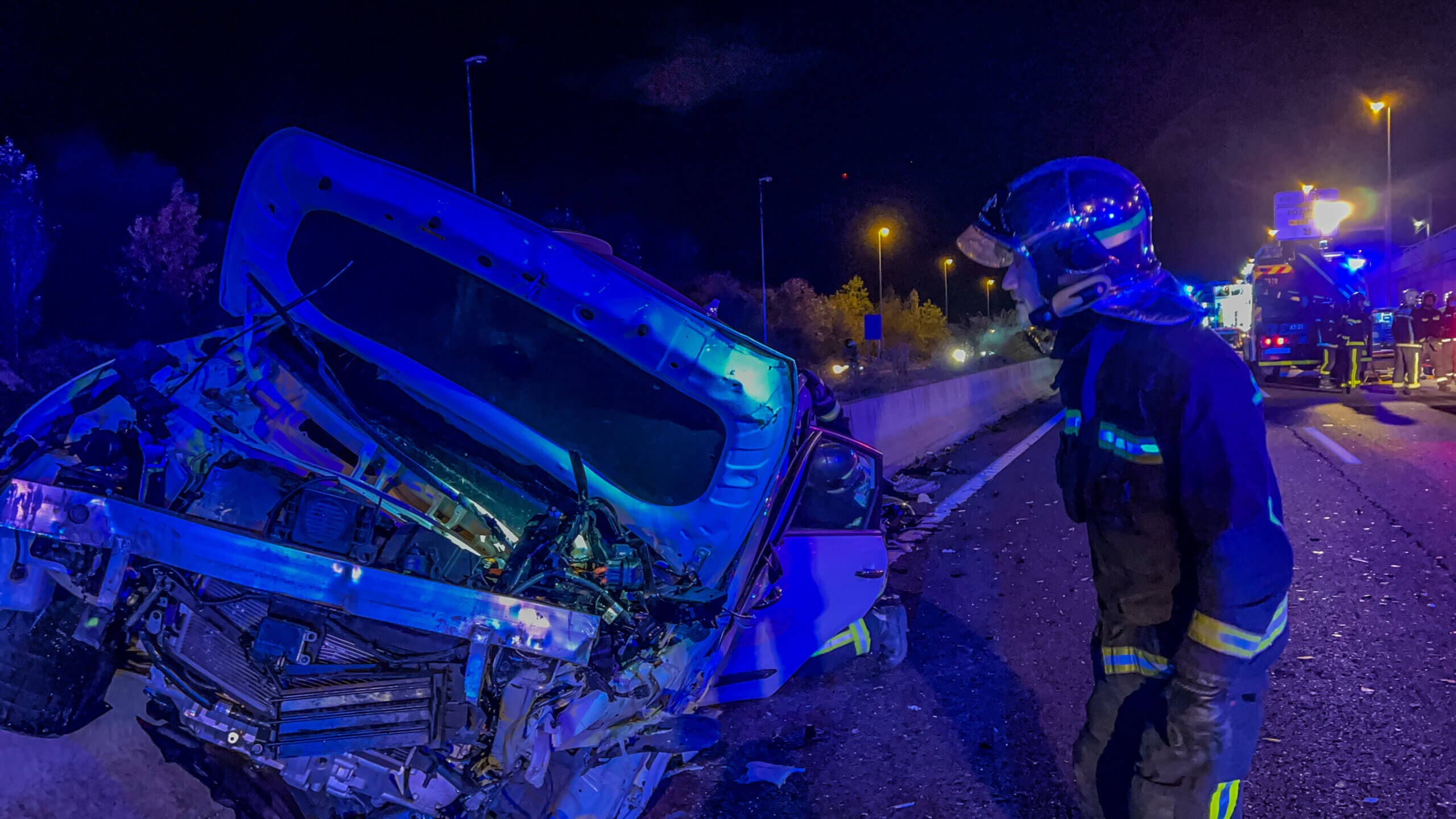 El otro conductor, un joven de 23 años, ha tenido que ser rescatado del vehículo por los Bomberos de la Comunidad de Madrid y presentaba una fractura de fémur y posible fractura de pelvis. Ha sudo estabilizado y trasladado por el SUMMA con pronóstico grave al Hospital Clínico.