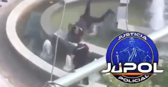 Tras ser rodeado por varios agentes, uno de ellos decidió lanzarse sobre él por la espalda, en un complicado salto, y logró su detención.