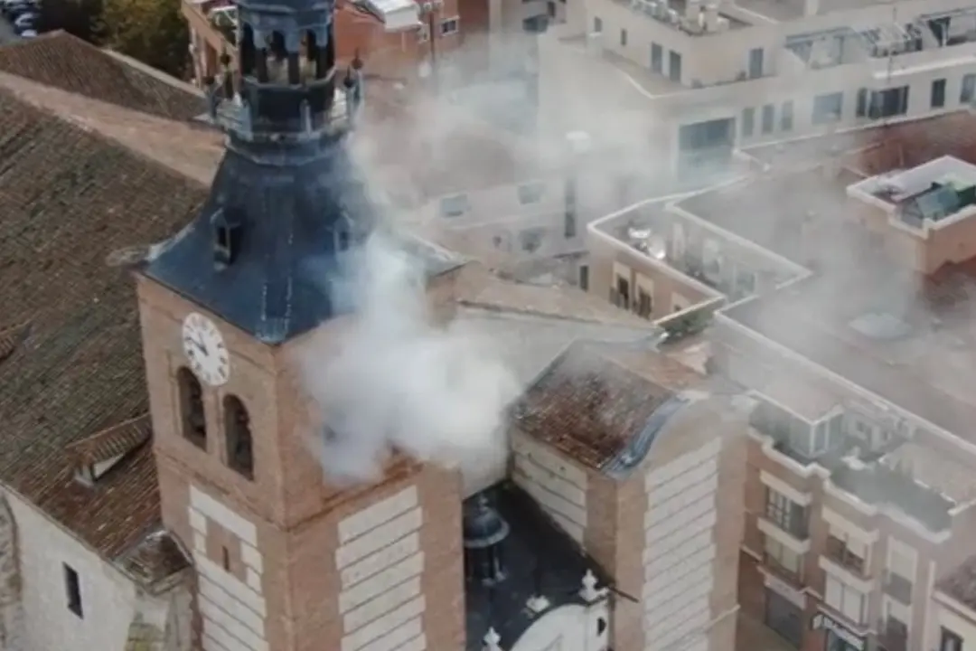 Espectacular simulacro de incendio en la Catedral de Getafe para evitar desastres como el de Notre Dame
