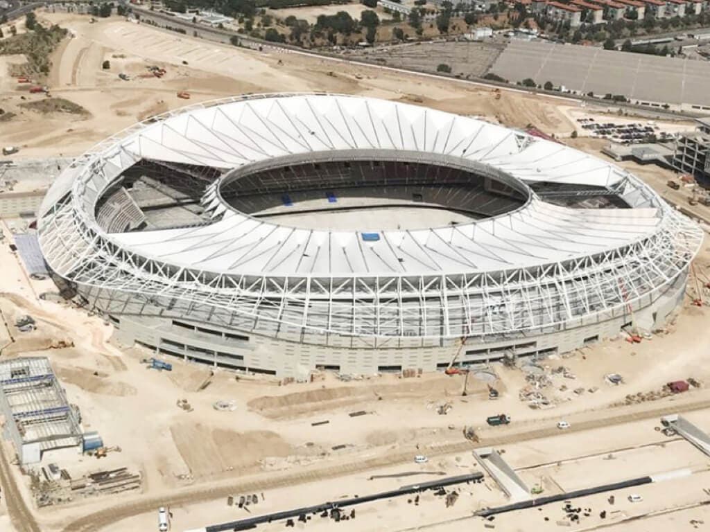 Continúa la construcción del nuevo estadio del Atlético de Madrid cuya inauguración se espera para dentro de unos tres meses.