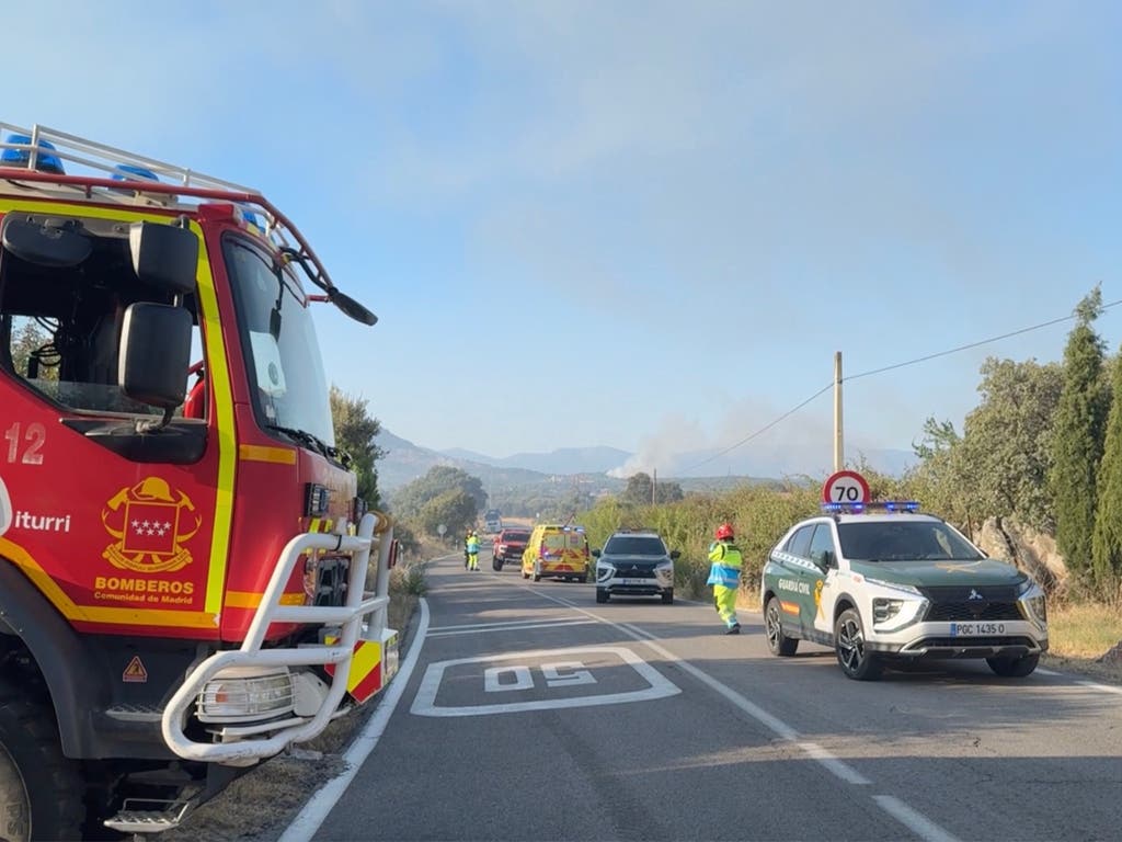 Estabilizado un incendio con tres focos en Zarzalejo tras el desalojo de una urbanización y el corte de la M-532