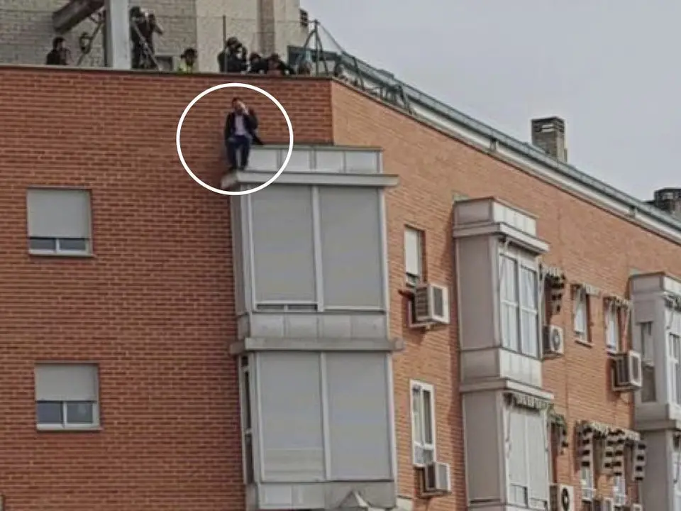 Todo esto ocurrió a las 3 de la tarde. Al parecer, el suicida se subió a la azotea del edificio y después se sentó en la cornisa de una terraza. Desde allí, llamó por teléfono a su mujer, de la misma edad, 47 años.