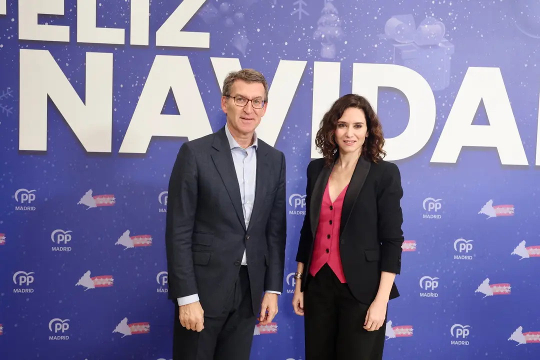 El líder del PP, Alberto Núñez Feijóo, y la presidenta de la Comunidad de Madrid, Isabel Díaz Ayuso, volvieron a exhibir unidad en la cena de Navidad del PP de Madrid, celebrada anoche en Alcobendas ante un millar de afiliados, y en la que Feijóó situó al PP de Madrid como «clave» para un triunfo electoral.
