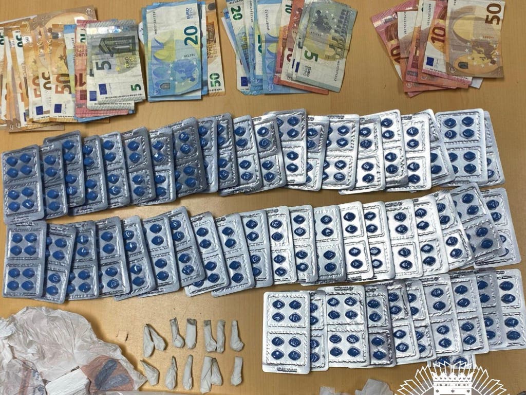Se practicaron registros tanto en el establecimiento como en el domicilio de los detenidos, donde se localizaron más de 300 gramos de cocaína, 80 gramos de ketamina, 572 pastillas de sildenafil (viagra) y 16.000 euros en efectivo.