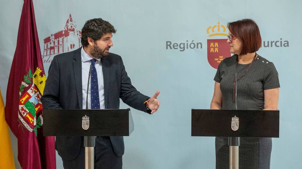 Franco, vicepresidenta y consejera del área social del Gobierno murciano desde mayo de 2019, ha comunicado en rueda de prensa la decisión junto al presidente murciano.