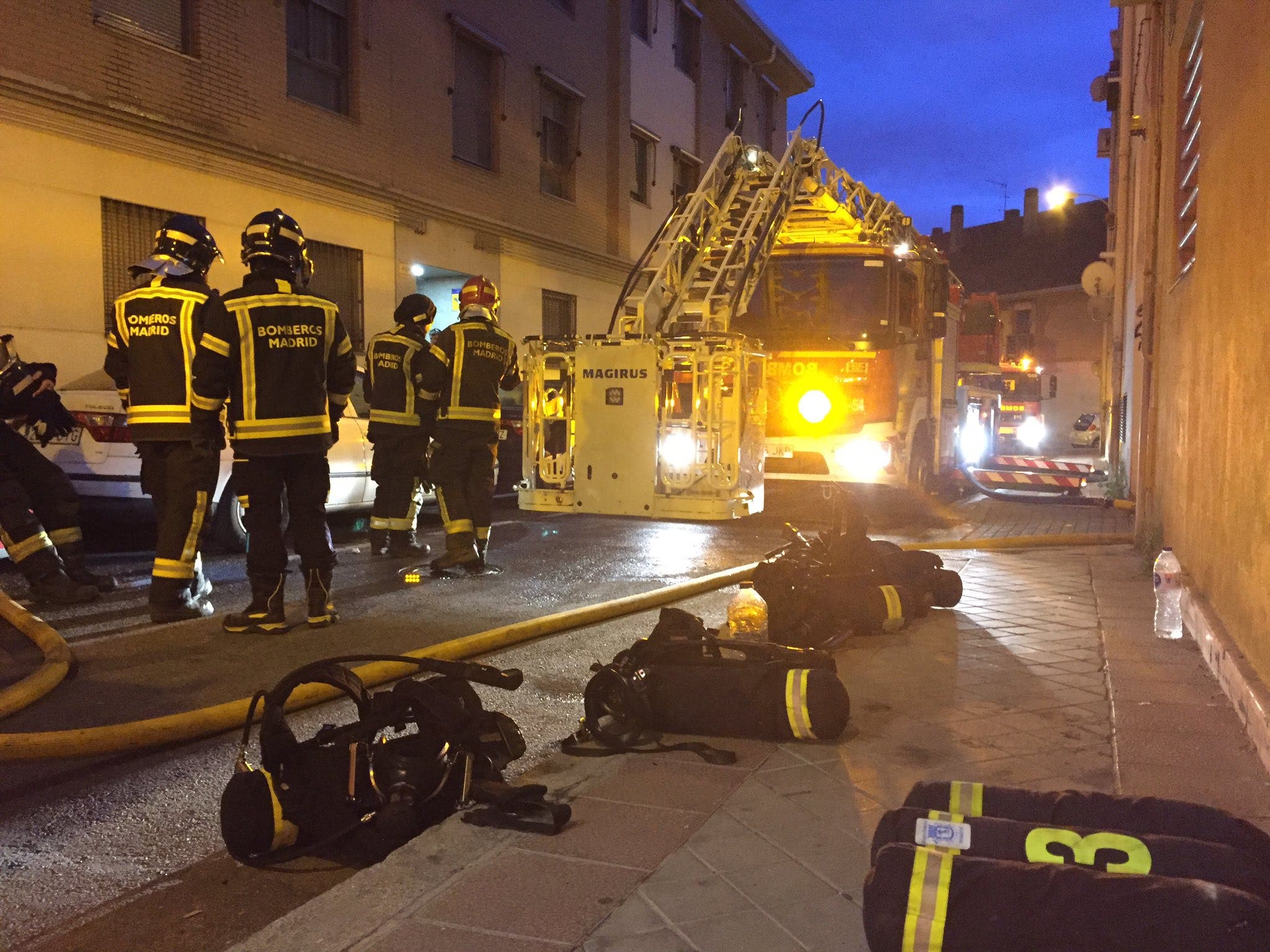Los Bomberos del Ayuntamiento de Madrid han derribado la puerta de entrada al inmueble y han hallado inconsciente al joven, intoxicado por inhalación de humo.