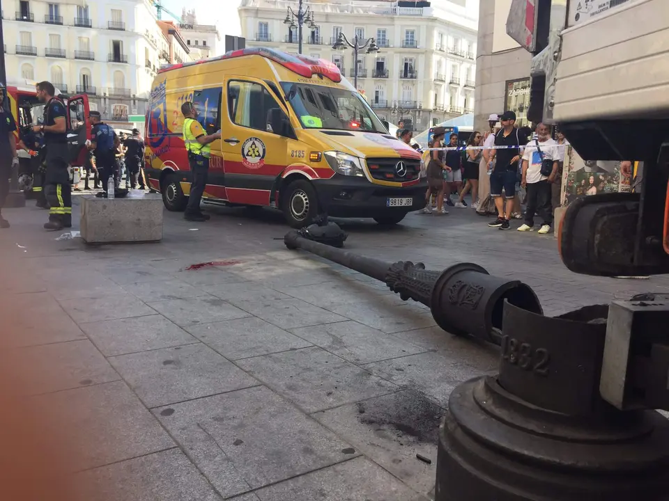 Herida tras caerle encima una farola en la Puerta del Sol