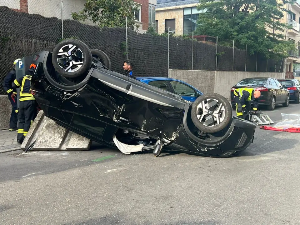 Un hombre de 34 años resultó herido este domingo tras chocar el SUV que conducía con otro coche y volcar en la confluencia de dos calles del distrito madrileño de Chamartín.