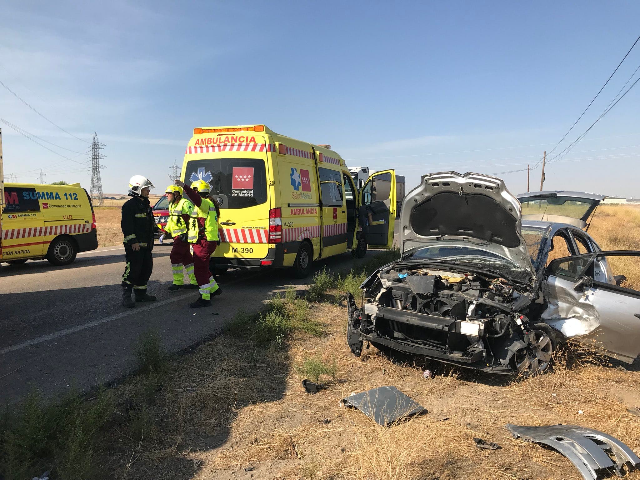 El conductor del turismo estaba atrapado en el interior del vehículo, por lo que ha sido excarcelado por los Bomberos y posteriormente ha sido atendido por el SUMMA y trasladado al Hospital de Valdemoro, con politraumatismos y una contusión costal.