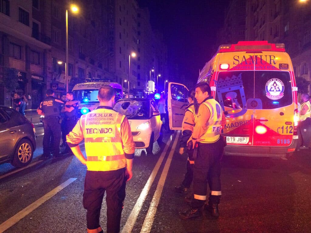 El accidente se ha producido sobre las 5.15 horas, a la altura del número 76 de la conocida calle madrileña, muy cerca de la Plaza de España, y en un lugar cercano a un semáforo pero sin paso de peatones.