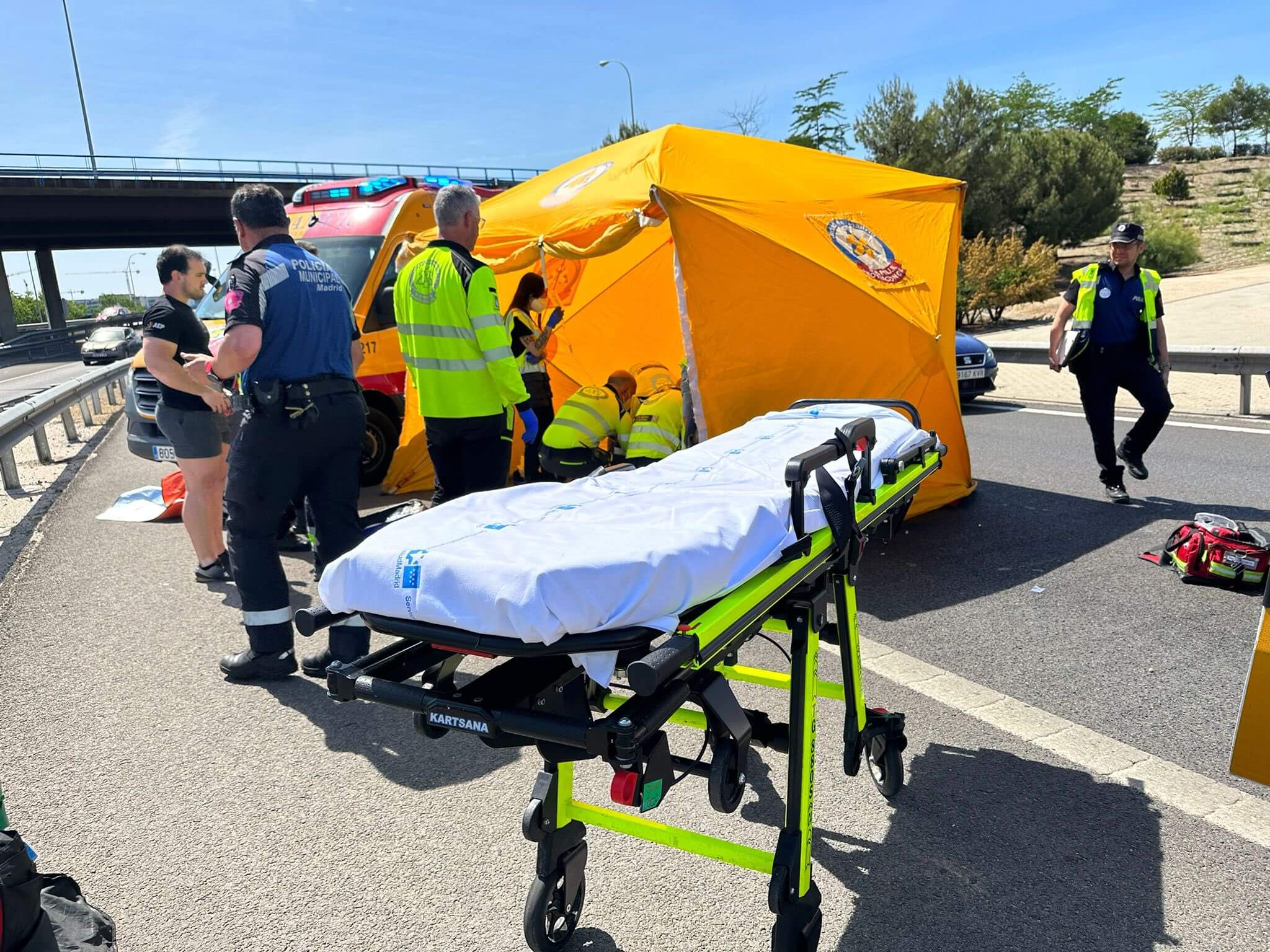 Finalmente, ha sido trasladado al Hospital 12 de Octubre en estado grave. En el siniestro se ha visto involucrado también un coche. El motorista ha salido despedido unos 50 metros tras la colisión.