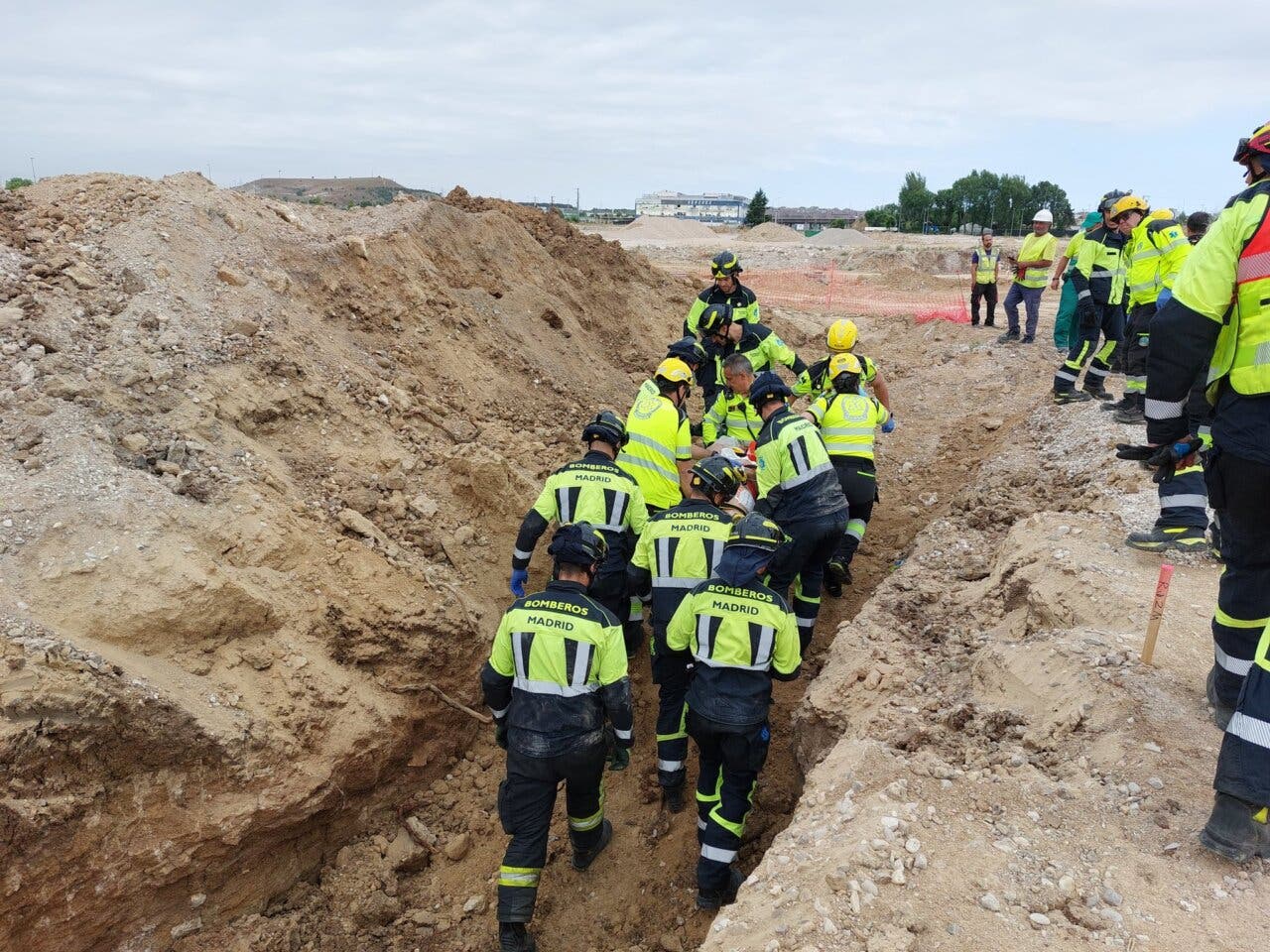 Al lugar han acudido los Bomberos del Ayuntamiento de Madrid, que lo han rescatado del interior de la zanja. Posteriormente, ha sido atendido por el SAMUR.