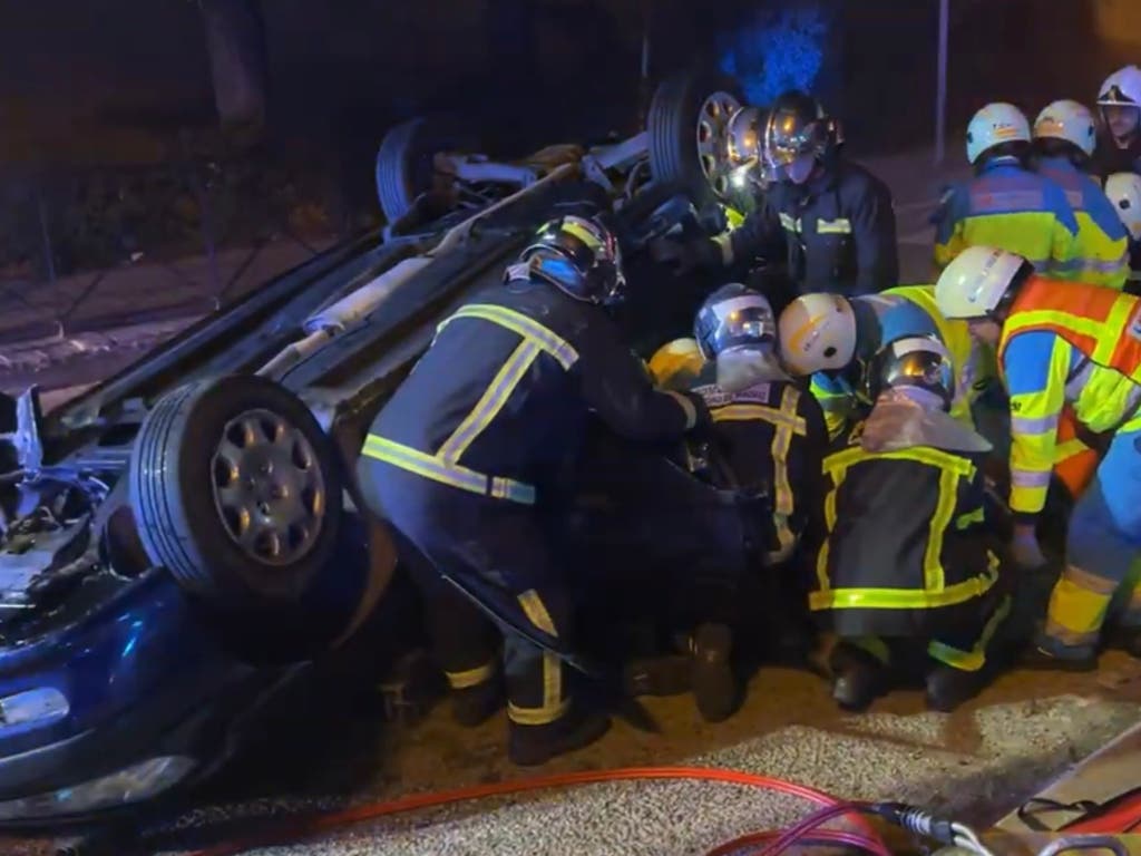 El coche ha quedado volcado tras colisionar contra una isleta alrededor de las 3:30 horas de la madrugada, por lo que el conductor ha quedado atrapado en el interior.