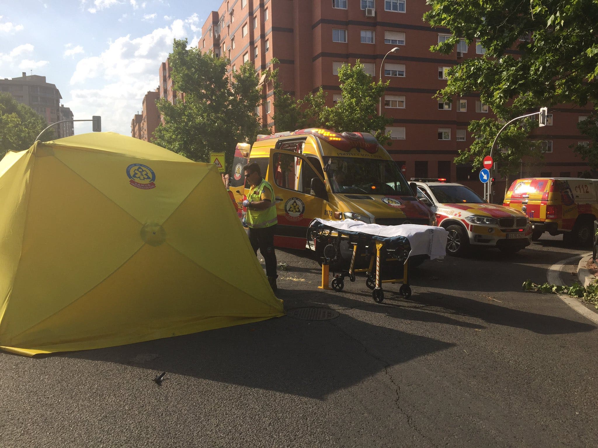 El hombre ha sido atendido en el lugar por el SAMUR y trasladado al Hospital Gregorio Marañón con un traumatismo torácico severo y fractura en un brazo, en una vértebra y en múltiples costillas.